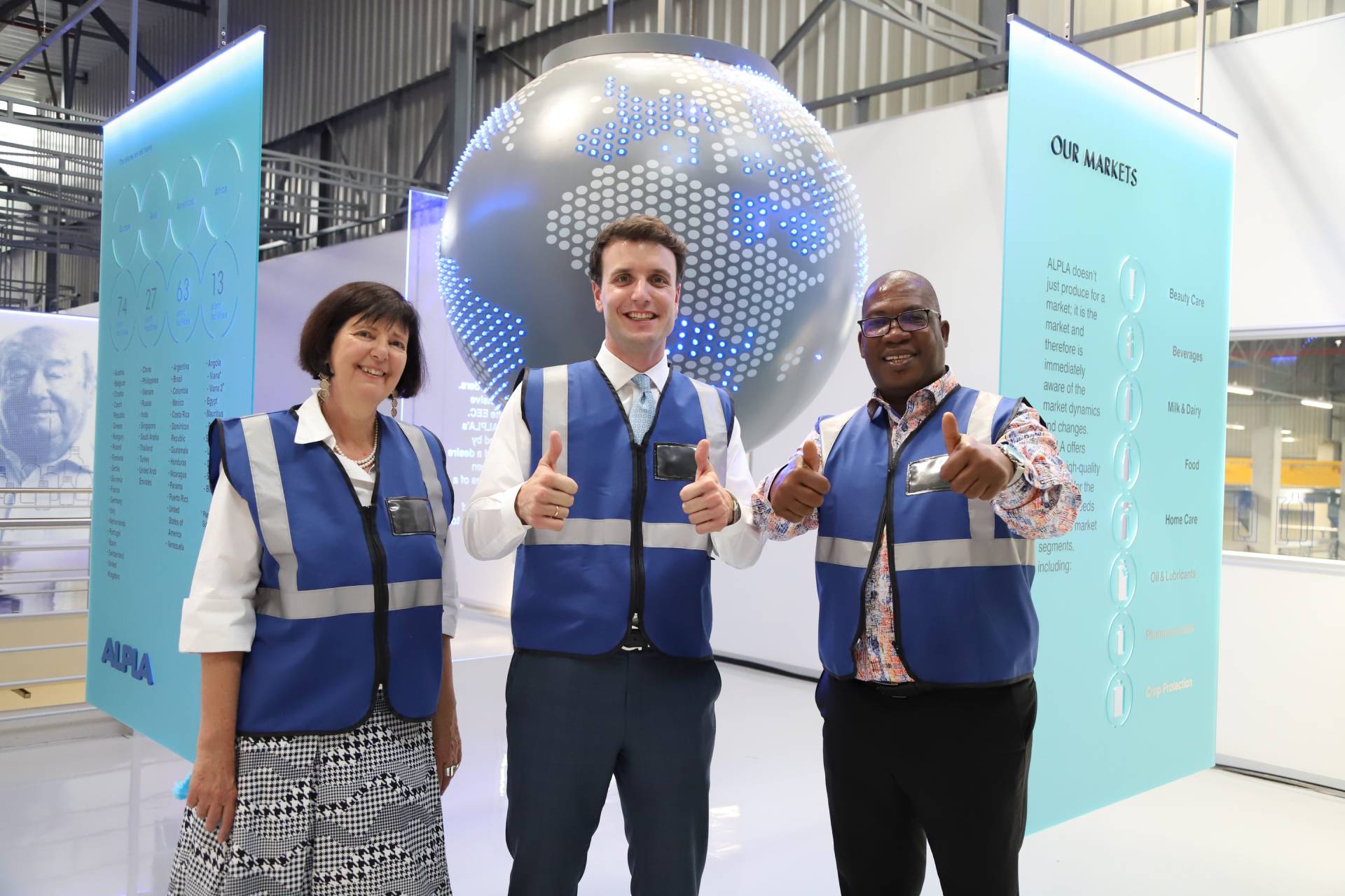 35,000 square metres of covered production, administration and storage space, another 12,500 for future expansion, and 30,000 square metres of roof area equipped with solar panels: with the new plant in Lanseria, ALPLA is setting the course for further growth in Sub-Saharan Africa. After around two years of construction and relocation, the international packaging company celebrated the opening of the ultra-modern location on 12 October in the presence of the South African Minister of Forestry, Fisheries and the Environment Barbara Creecy, the Premier of the Gauteng province Panyaza Lesufi, Austrian Ambassador-Designate to South Africa Romana Königsbrun and many other high-ranking guests.