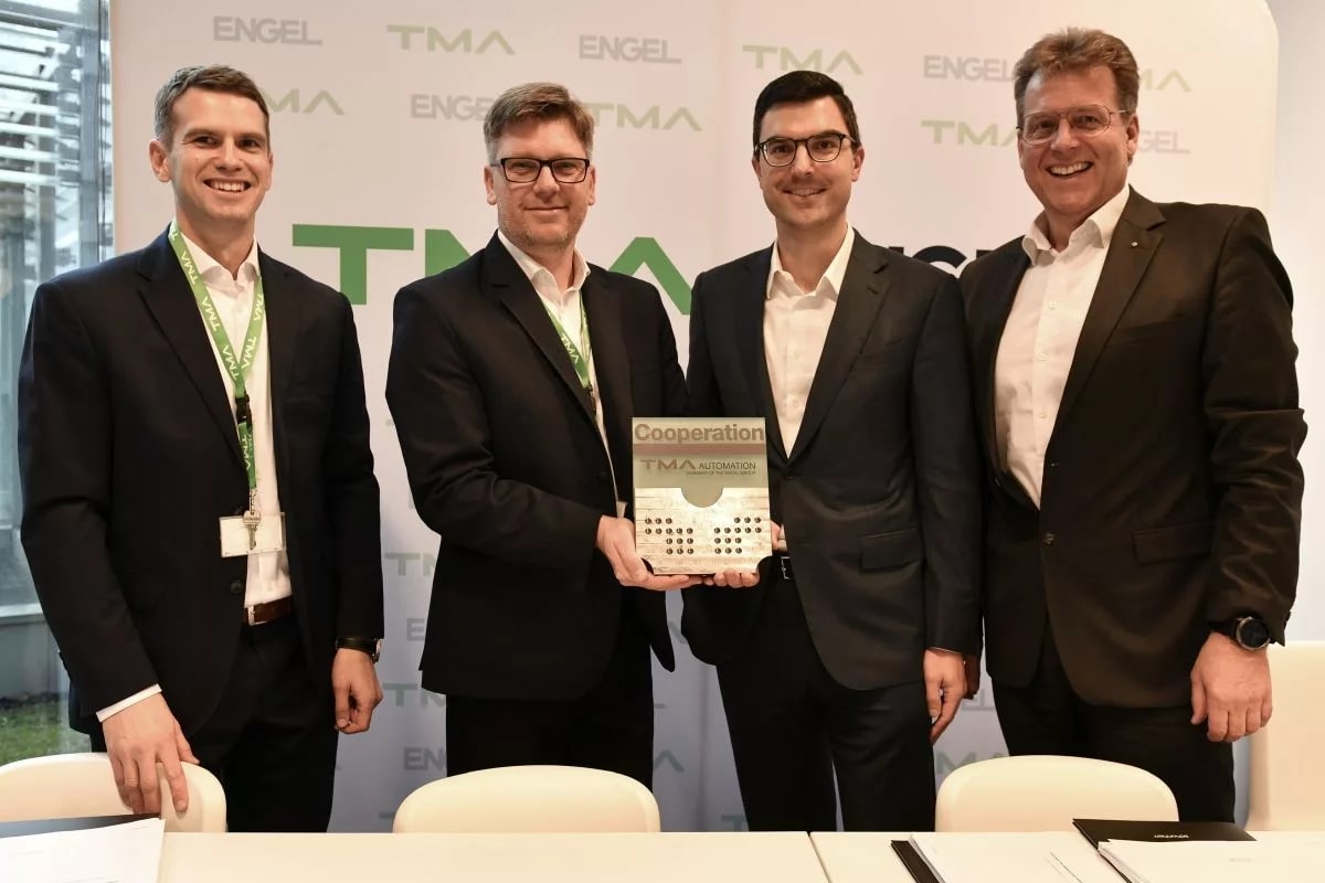 “TMA’s technologies perfectly complement ENGEL’s in-house spectrum of robots and automation components,” as Walter Aumayr, Vice President Automation and Peripheral Units of the ENGEL Group confirms. ENGEL offers highly-integrated and fully-automated production cells for injection moulding applications from a single source, boosting both the production efficiency and the investment protection for its customers with this holistic approach.