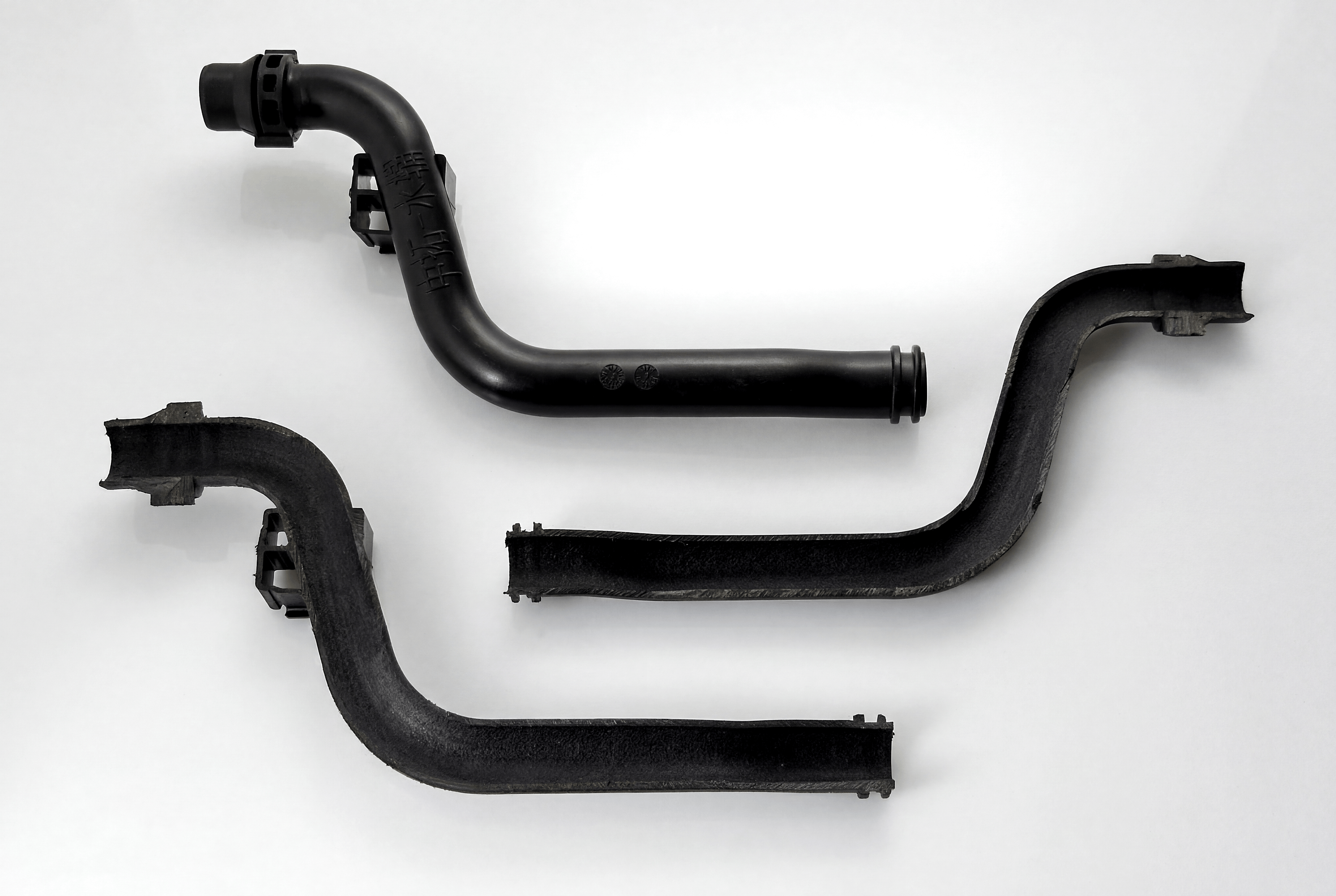 ENGEL fluidmelt produces hollow structures through the injection of water or gas. In this process, the molten core of the component is displaced into an overflow cavity or back into the plasticising unit, thereby deliberately creating a cavity within the component. Such hollow structures reduce component weight and material usage. At Chinaplas, the process is demonstrated using gas injection and overflow cavities. The component, with a shot weight of 70 g, is manufactured from a PA66 compound with 30% glass fibre in a cycle time of 50 seconds.