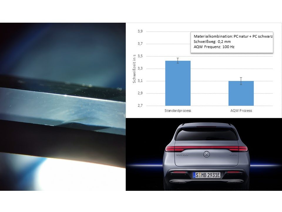 Various test series have shown that welding times can be significantly reduced in some cases. The manner makes use of the absorption properties of the plastics and consolidates two different wavelengths that are alternately guided over the welding zone in a controllable pattern. Experience with Advanced Quasi-Simultaneous Welding shows an increase in process time compared to the standard process with only one laser source. The new approach can be applied to elements such as PC, but other common plastics are also conceivable in the future.