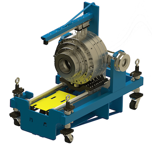 Guill Tool is proud to announce the immediate availability of its new die cart with easy disassembly and reassembly. It features a high volume, adjustable center accumulating crosshead. This crosshead is designed to produce a smooth linear bore and provide jacketing over various substrates. The crosshead’s maximum thru core is 18,” while its’ maximum die ID is 23”. Built to handle thermoplastic applications, the crosshead includes tooling and isolation sleeve design.