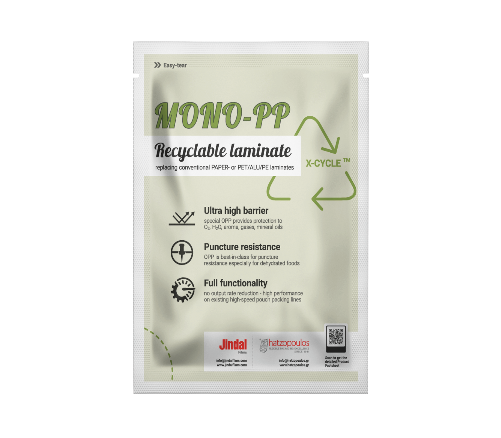 Jindal Films (Hall 9 Stand F26), a global leader in the development and manufacture of specialty films for the flexible packaging and labeling markets, will showcase during Interpack 2023 various print, barrier and sealing OPP technologies designed to facilitate the switch from non-recyclable laminates (i.e. containing PET, Alu-foil, Paper …) towards mono-material mechanically recyclable PP based laminates for flexible packaging markets.