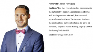 “Cooling of the plastic product represents both one of the most critical and most lengthy sub-processes in the extrusion blow moulding process,” explains Aaron Farrag, deputy CEO of the FarragTech GmbH.