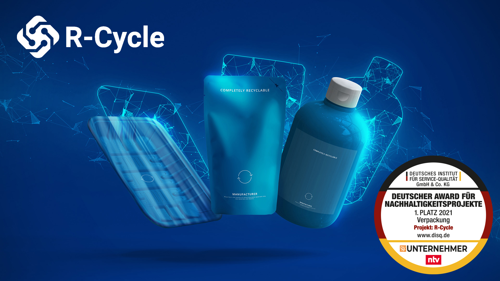 R-Cycle – the digital product passport for sustainable plastics – receives the German Sustainability Award 2021 in the “Packaging” category. The award is conferred by the German Institute for Service Quality (DISQ), the German news channel ntv, and Dup Unternehmer (German Entrepreneurship Platform for Digitalization and Sustainability). The award is patroned by Brigitte Zypries, former Federal Minister (ret.).